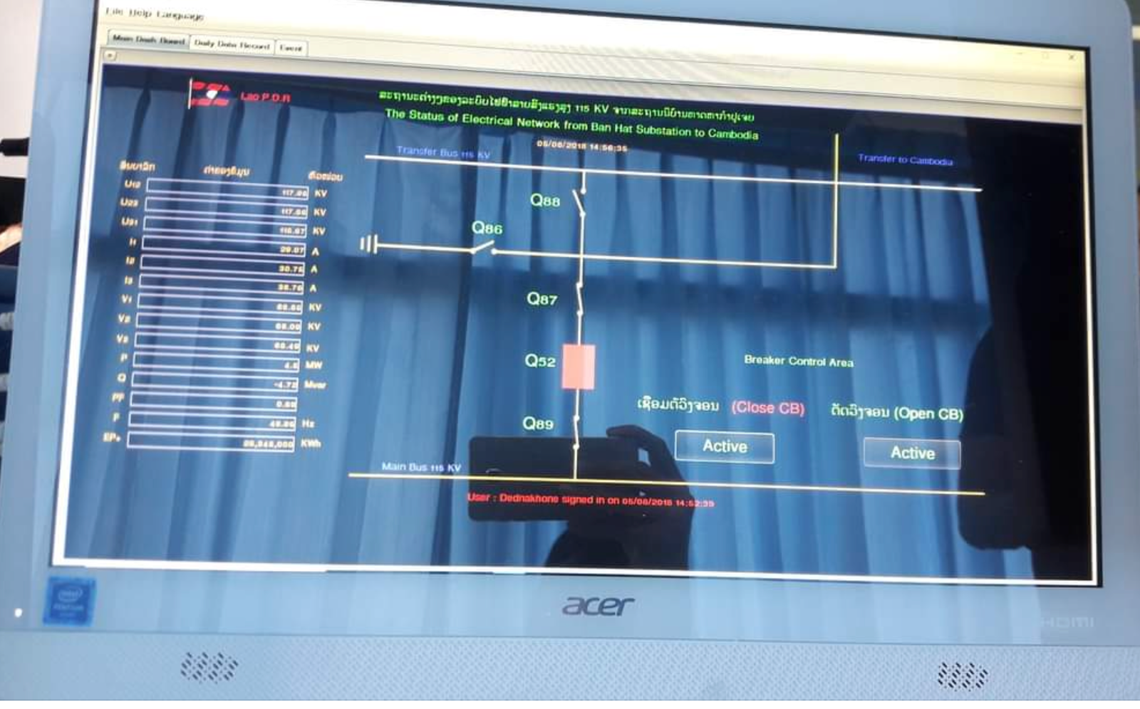 Électricité du Laos (EDL) undertook a project to install the Automation SCADA System to monitor, control, and manage the 115 kV high-voltage electrical transmission network, enabling the interconnection of the power systems between Laos’ electrical network and Cambodia’s electrical network at the Ban Hat Substation in southern Laos. – The company was responsible for the design and development, as well as testing, report approval, installation (including CT, VT, PMU, Automation I/O instrumentations, TCP/IP networks, and wiring of electrical cables), software development, customer service, and system commissioning.
